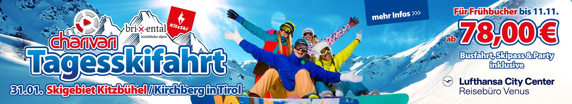 charivari Tagesskifahrt nach Kirchberg im Skigebiet Kitzbühel am 31.01.2026